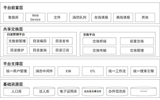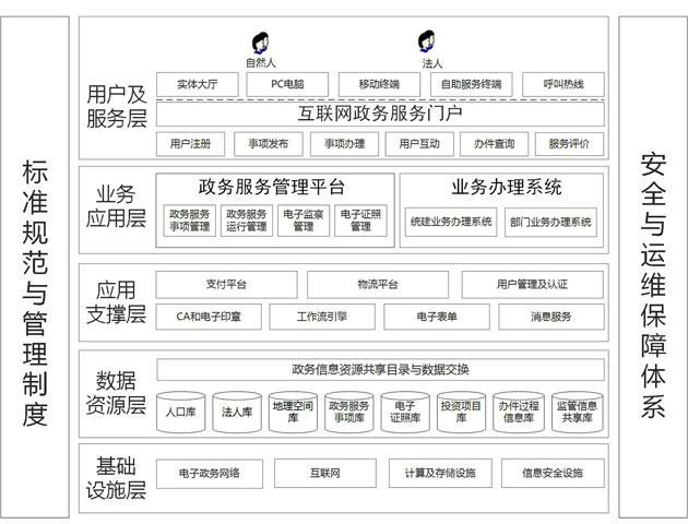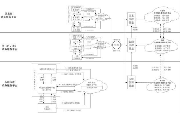 “互联网+政务服务”平台总体层级架构和信息流架构示意图