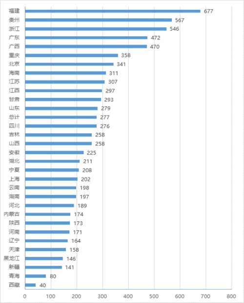 图18 各省(区、市)政务大厅平均进驻事项数情况