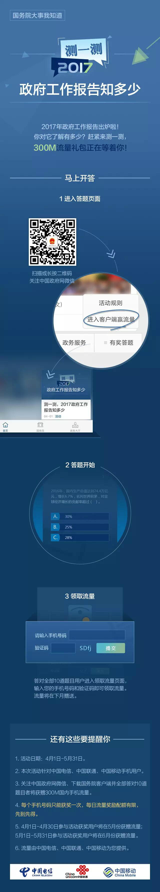 答题送流量!测一测你所知道的政府工作报告,300M流量等你来拿